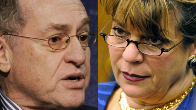 It all started when Dershowitz complained about the way Hardcorey handlen the Zimmerman case. After what he said, she decided to be the pisk, so she called up Harvard, where Dershowitz is the Felix Frankfurter Professor of Law, and shtrafeerened to take legal action against the Law School, make him give the endowed chair back to Felix Frankurter, have the Bar expel him, and sue him for libel and slander. For forty minutes, zi farmacht nit dos moyl. His being a lamden, a major bal toyreh, didn’t phase her. It made absolutely no difference. Whoever he was, she wanted him to ver derharget!