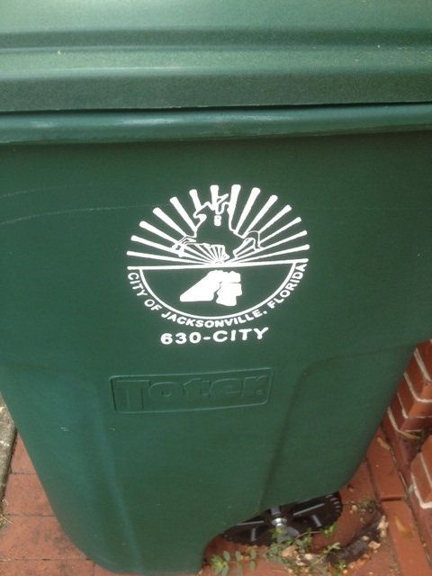 Jacksonvillians: beware of government-issued garbage and recycling containers! You can spot them by their COJ logos and, with regard to the recycling bins, the bright yellow lids. These nefarious devices did not appear until the city elected its first Marxist-socialist Democratic mayor, Alvin Brown. These seemingly benign trash cans are not only an arm of the mayor’s cult of personality, but also a means to consolidate power through intelligence gathering. The political humidity of this city renders most people too lethargic to spot, much less rise up against, such abusive government tyranny.